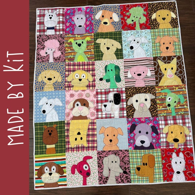 There are fourteen dog appliqué patterns which you can make into a crib, nap, or twin-sized quilt. You can also use the appliqué patterns on their own to embellish T-shirts, make tote bags, pillows and more. You can even shrink them down to use as embroidery patterns. :-)